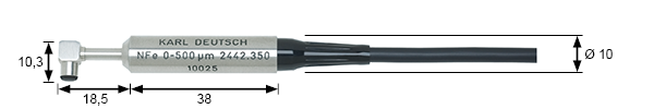Mikrosonde NFe 0° für Messungen auf kleinsten Abmessungen und an schwer zugänglichen Stellen, z. B. am Grund von Bohrungen